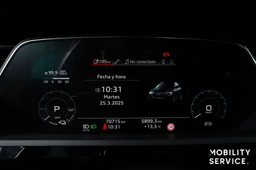 Esta versión del Audi e-tron tiene tracción total (AWD) y desarrolla una potencia de 300 kW (402 cv) permitiendo una velocidad máxima de 200 km/h y una aceleración de 0 a 100 km/h en tan solo 5,7 segundos.
