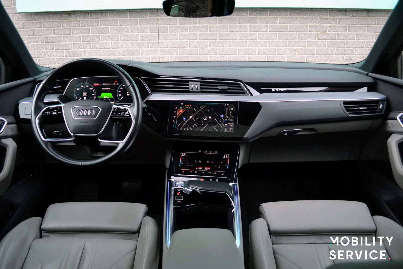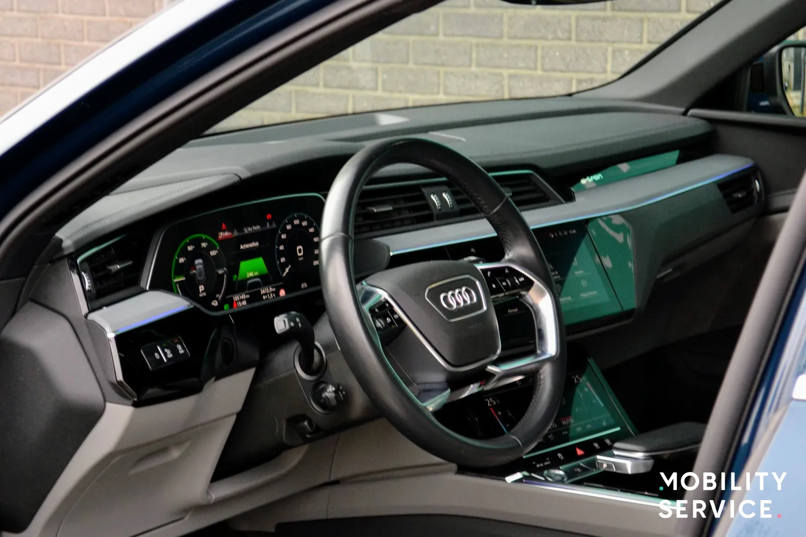 Esta versión del Audi e-tron tiene tracción total (AWD) y desarrolla una potencia de 300 kW (402 cv) permitiendo una velocidad máxima de 200 km/h y una aceleración de 0 a 100 km/h en tan solo 5,7 segundos.