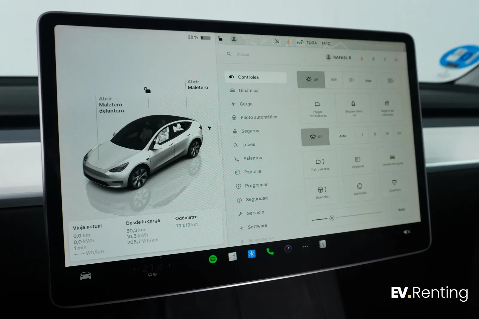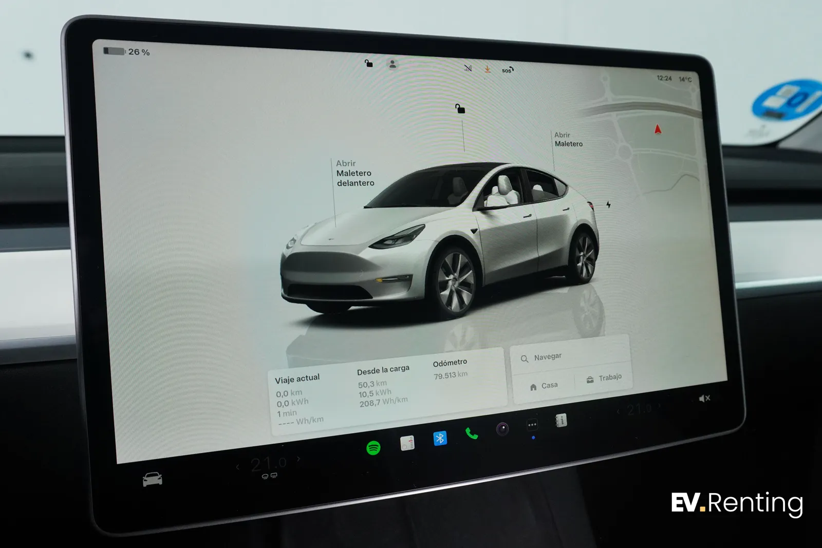 Esta versión monta una batería Lithium-ion NCM con capacidad utilizable de 75.0 kWh que permite una autonomía WLTP de 542 km (aprox. 445 km en condiciones reales) en una única carga con un consumo medio de 16,9 kWh/100km. Sin embargo, has de tener en cuenta que esta unidad ya ha cumplido con un primer ciclo de renting y cuenta ahora mismo con 79.513 km. recorridos. Con un estado de salud de la batería del 93% su autonomía real estimada actual es de 413 km.